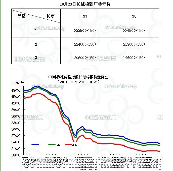 2012年10月30日中国棉花价钱指数(CC Index)及分省到厂价(图)